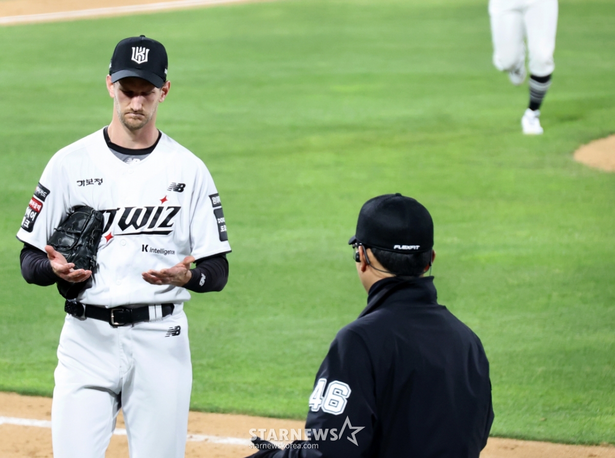 KT 선발투수 보쉴리가 30일 수원KT위즈파크에서 열린 2026KBO리그 LG트윈스와 KT위즈 경기 4회초 수비를 마친 후 더그아웃으로 향하고 있다. 보쉴리는 4이닝 3실점으로 등판을 마무리했다.. 2026.04.30