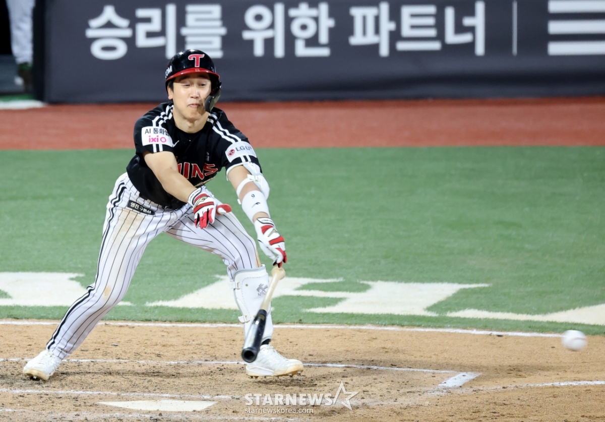 LG 구본혁이 30일 수원KT위즈파크에서 열린 2026KBO리그 LG트윈스와 KT위즈 경기 8회초 2사 1,3루 상황에서 역전안타를 만들어냈다. 구본혁은 배트를 던지며 역전안타를 쳤다. 이 안타로 LG는 역전에 성공했다.