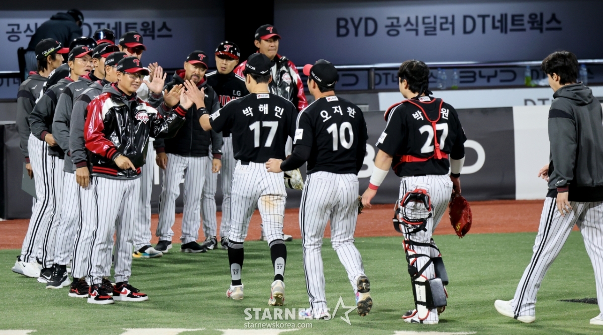 스포츠야구[포토]'미소가 흐른다!' 염경엽 감독발행 : 2026.04.30 ・ 21:58조회수 :수원=강영조 선임기자LG 염경엽 감독과 선수들이 30일 수원KT위즈파크에서 열린 2026KBO리그 LG트윈스와 KT위즈 경기 9회말 수비를 마치며 자축하고 있다. 2026.04.30<저작권자 © 스타뉴스, 무단전재 및 재배포 금지>브리핑추천 기사강영조 선임기자기자홈좋아요스포츠-야구의 인기 급상승 뉴스스포츠-야구의 최신 뉴스AD