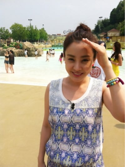 박은혜는 18일 오후 자신의 트위터에 "새로 시작하는 tvN '완판기획'. 현재 캐리비안베이에서 촬영 중. 잠시 후에 이곳에서 실시간 생중계됩니다. 오세요오세요 재밌어요"라는 글과 함께 사진을 올렸다.