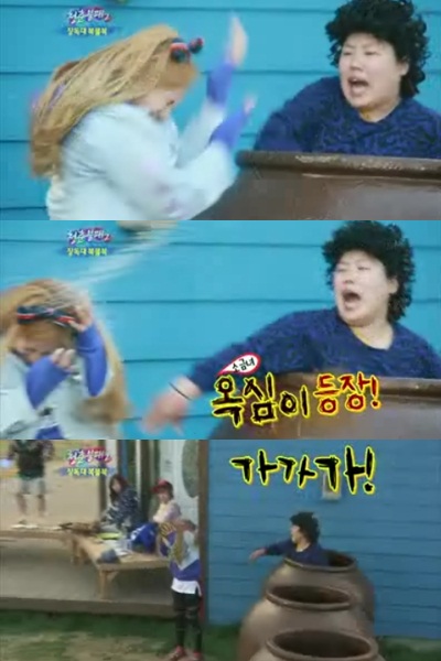 '청춘불패2'는 지난 26일 장독 복불복 게임 진행 중 효연이 장독을 여는 순간 벌칙맨이 튀어나와 소금을 잔뜩 뿌리는 장면이 방송됐다. 시청자들은 "너무 위험해 보인다"고 지적했다. 자칫 소금이 눈에 들어갈 경우 실명할 수도 있다는 것이다.