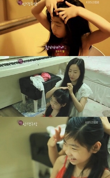 지난 11일 오후 방송된 KBS 2TV '스타인생극장'에 출연한 강수지는 초등학교 3학년인 딸 황비비아나를 등교시키는 모습이 전파를 탔다.