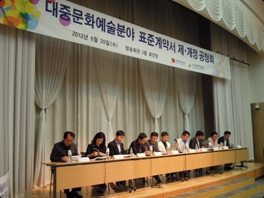 이날 공청회는 제1부 '대중문화예술인 표준전속계약서의 합리적 개선방안'과 제2부 '대중문화예술인 방송출연 표준계약서 제정방안'으로 나뉘어 진행됐으며 사회는 손무현 한양여자대학교 실용음악과 교수가 맡았다.