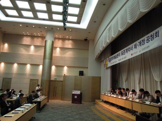 대중문화예술분야 표준계약서 제·개정 공청회는 문화체육관광부 주최로 대내외적으로 영향력이 커지고 있는 연예 산업의 체계적 산업 기반 조성과 공정거래 질서 확립을 위해 가수와 연기자의 표준전속계약서 개정 및 방송출연 계약서 제정과 관련한 공청회다.