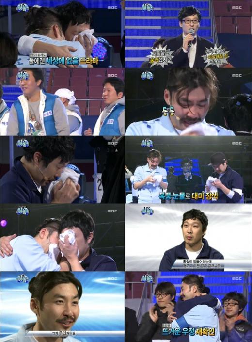 동전줍기, 알까기 등 가볍게 시작한 종목 대결을 마치고 통곡하는 두 사람의 모습에 다른 멤버들은 어색해하면서도 역시 울컥해하는 모습으로 진한 우정을 드러냈다.