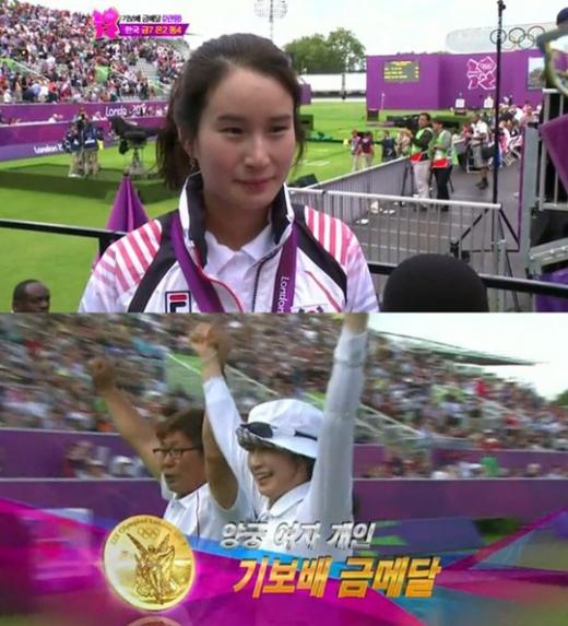 2012 런던올림픽에서 금메달 소식을 전해준 양궁 기보배 선수의 중계방송이 최고 시청률을 기록했다.