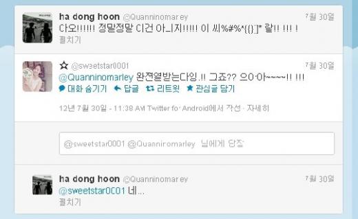 '깜짝 결혼'을 발표한 가수 별과 방송인 하하가 트위터를 통해 어색한 대화를 주고받은 내용이 포착됐다.
