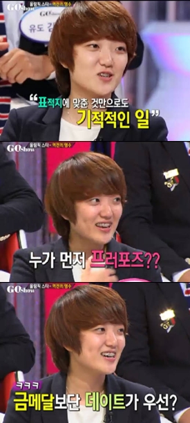 17일 오후 방송된 SBS ‘고쇼(GO Show)'에서 코너 '올림픽스타-역전의 명수’특집으로 런던올림픽 메달리스트들이 출연했다.