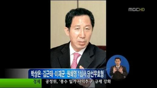 MBC는 이날 정오뉴스에서 대검찰청 공안부가 올해 4월 치러진 19대 총선에서 선거법 위반으로 기소된 당선자 30명 중 새누리당의 박상은 김근태 이재균 의원과 민주통합당 원혜영 의원은 1심에서 당선 무효형이 확정돼 항소심이 진행 중이라고 전했다.