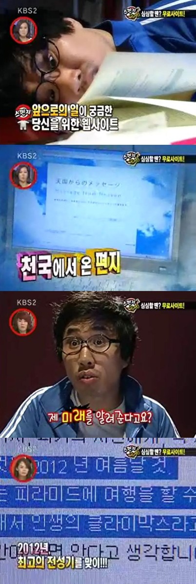 '천국에서 온 편지'는 자신의 이름과 나이 성별을 입력하면 미래의 자신이 현재의 자신에게 미래를 암시하는 내용의 편지를 보낸다는 예언사이트로 방송 이후 큰 화제를 모은 바 있다.