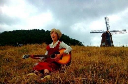 게재된 사진 속 사유리는 영화 '사운드 오브 뮤직'의 주인공 마리아(줄리 앤드류스 분)를 연상시키는 가발과 의상을 입고 들판에 앉아 즐거운 표정으로 기타를 치고 있어 눈길을 끈다.