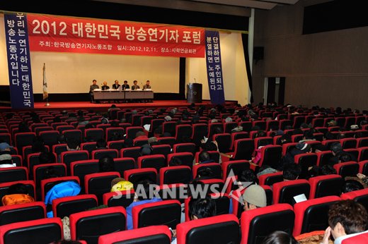11일 오후 서울 여의도 사학연금회관 대강당에서 열린 '2012 대한민국 방송연기자 포럼'에 참석한 연기자들이 패널들의 발표를 듣고 있다.