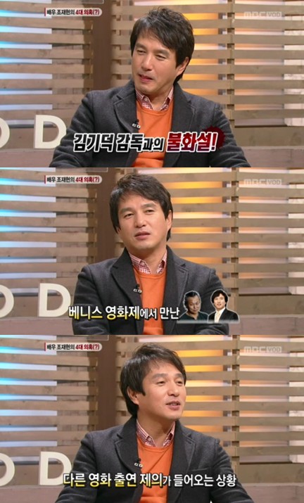 이어 조재현은 "솔직히 말씀 드린다. 김기덕 감독 영화는 출연료가 거의 없다. 내가 변한 것일 수도 있지만 배우가 돈을 버는 것은 당연한 것"이라며 "사실 김기덕 감독 영화에 출연하기로 했었으나, 좀 더 돈을 많이 주는 곳과 계약이 돼서 어쩔 수 없었다"고 솔직한 고백을 이어갔다.