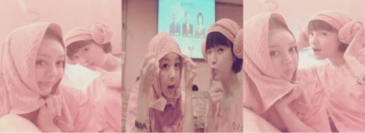 공개된 사진 속 백보람과 정가은은 수건을 양머리 모양으로 머리에 두른 채 특유의 깜찍한 표정을 짓고 있으며 뒤에는 제 18대 대통령 선거 개표방송이 TV를 통해 방영되고 있다.