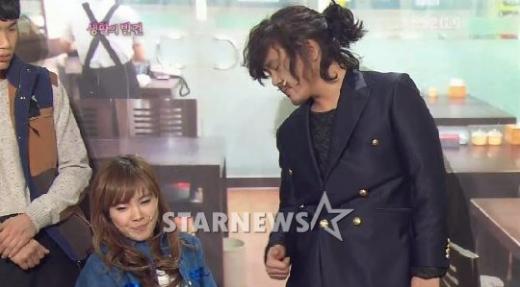 김인권은 이날 '개그콘서트'의 '노애' 코너를 패러디하며 손가락 뽀뽀를 비롯해, 신보라와 뽀뽀를 연상케 하는 퍼포먼스를 취하는 등 강도 높은 스킨십으로 웃음을 자아냈다.