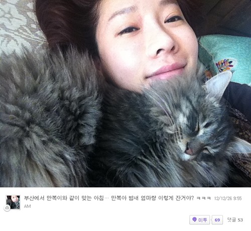 공개된 사진 속 곽현화는 자신이 키우는 고양이와 함께 부스스한 얼굴로 카메라를 응시하고 있다. 특히 화장기 없는 민낯임에도 불구하고 청순한 미모를 과시해 눈길을 끈다.