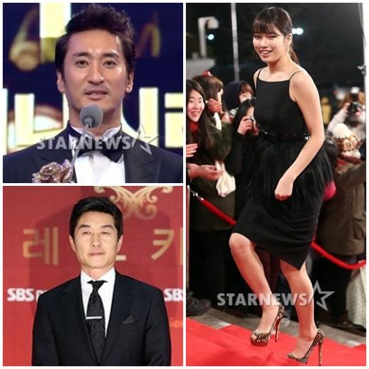 가수 겸 연기자 수지, 배우 김상중, 신현준이 2012년 연예 대상 시상식과 연기 대상 시상식에서 쌍끌이 수상으로 눈길을 끈다.