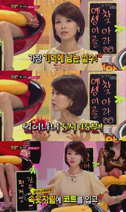 정지영은 23일 오후 방송된 SBS '강심장'에 출연해 과거 SBS 아나운서 시절 겪었던 방송 사고 후일담을 전해 눈길을 끌었다.