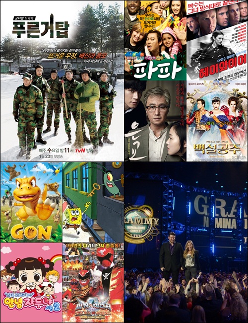 tvN은 10일 낮 12시 30분부터 '푸른거탑 더비긴즈'를 25화 연속 방송한다. SBS플러스는 9일부터 최신 드라마 '야왕', '돈의 화신', '내 사랑 나비부인'을 2편씩 연속 방송한다. 미드 전문채널 AXN은 9일과 11일 블록버스터 특집을 편성한다. 5개의 다른 스토리로 구성된 '엔드오브더월드'는 지난 1월 12일부터 전 세계 최초로 한국에서 방송된 것으로 9일에는 '지구최후의 날 Eve of Destruction'을 방송하고 11일은 '카테고리8, Cat8'을 방송한다. 또 9일에는 'CSI13'을 10편 연속으로 편성하고 10일에는 미국대통령 전용기를 무대로 펼쳐지는 '에어포스원'을 방송한다.