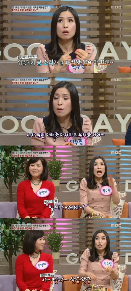 26일 오전 방송된 MBC '기분 좋은 날'에서는 박수림, 방송인 윤영미와 전문가들이 출연해 층간 소음의 합리적인 해결 방법에 대해 이야기를 나눴다.