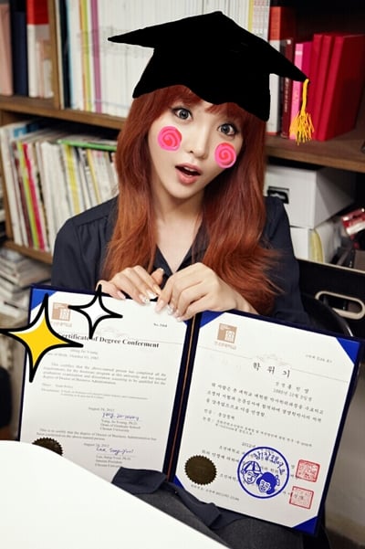 세미 트로트 가수 홍진영(28)이 박사 학위 취득 인증샷을 공개했다.