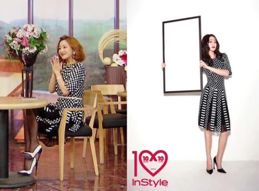 김희선과 김효진은 최근 똑같은 의상을 완전히 다르게 소화해 눈길을 끌었다. 김희선은 얼마 전 방송된 SBS '화신-마음을 지배하는 자'에서, 김효진은 패션지 인스타일 화보에서 블랙 앤 화이트의 같은 원피스를 착용했다. 이 옷은 마크 제이콥스의 2013년 SS 컬렉션 의상이다.