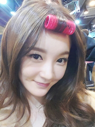 사진 속 강민경은 앞머리에 헤어롤을 말고 미소를 짓고 있다. 얼마 없는 앞머리를 말고 있어 귀여움을 자아내 눈길을 끌었다.