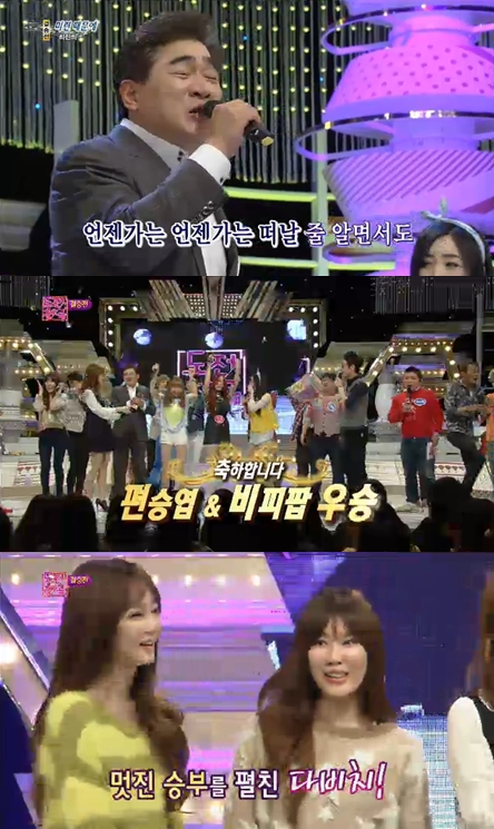 가수 편승엽과 신인 걸그룹 비피팝이 '도전 1000곡' 최종우승을 차지했다.