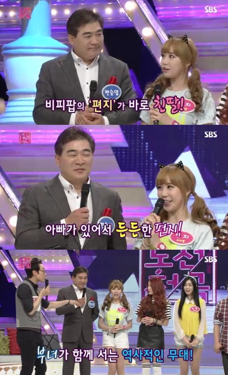 가수 편승엽이 자신의 딸이자 아이돌 그룹 비피팝의 멤버인 편지(본명 편수지)와 함께 방송에 출연했다.