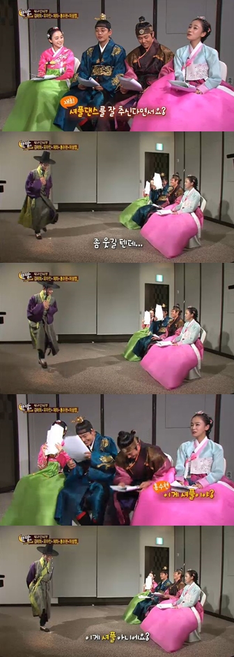 이상엽의 셔플 댄스에 김태희와 유아인은 얼굴을 가리며 웃음을 참지 못했다. 홍수현은 "이게 셔플이냐"고 타박했다.