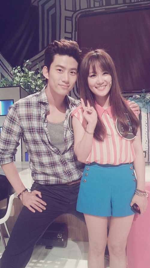 또한 택연 옆에서 수줍은 미소를 짓고 있는 김지민은 스트라이프 민소매 블라우스와 파란 핫팬츠를 입고 상큼한 매력을 뽐냈다.