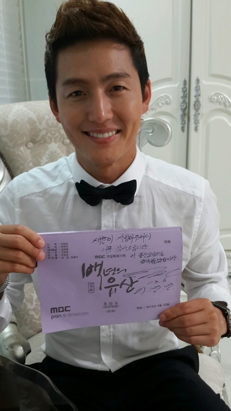 지난 23일 MBC 주말특별기획 드라마 '백년의 유산'(극본 구현숙·연출 주성우)이 종영한 가운데 남자주인공 세윤 역을 맡아 안방극장 훈남으로 사랑받았던 이정진은 24일 소속사를 통해 마지막회 대본을 들고 감사를 전하는 모습이 담긴 사진을 공개하며 종영 소감을 밝혔다.