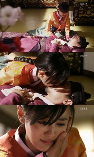 27일 오후 방송된 KBS 2TV 수목드라마 '천명: 조선판 도망자 이야기'(이하 '천명')에서 최우영(강별 분)이 이정환(송종호 분)에게 기습키스를 했다.
