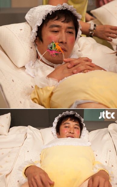 김병만은 3일 오전 제작사를 통해 종합편성채널 JTBC 코미디 프로그램 '시트콩 로얄빌라'에서 신생아로 변신한 모습이 담긴 스틸 사진을 공개했다.