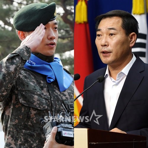 (왼쪽부터) 오는 10일 전역을 앞둔 가수 비(정지훈 병장), 5일 연예병사 감사 관련 브리핑에 참석한 국방부 위용섭 공보담당관 /사진=스타뉴스