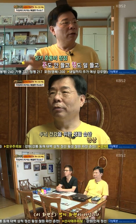 서유헌 교수는 "두뇌건강을 위한 특별한 비법이 있느냐?"는 조영구의 물음에 "매일 1시간씩 걷는 것이 좋다. 돈도 안 들고 힘도 별로 안 든다"고 답했다.