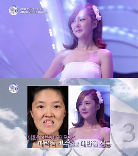 이날 방송에 출연한 김은애 씨는 21살에 남편을 만나 5세 아들을 둔 평범한 26살의 어린 아내이자 엄마다. 하지만 외모 때문에 남편에게 이혼을 강요당하는 아픈 사연 때문에 렛미인에 출연하게 됐다고.