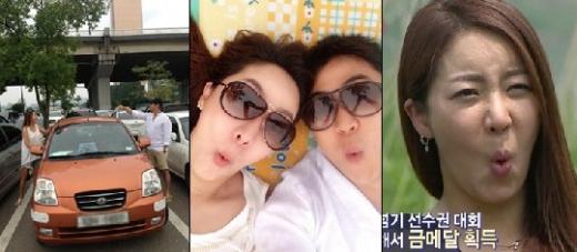 사진 속엔 한강 근처에서 좋은 시간을 보내고 있는 두 사람의 모습이 담겨 있다. 이 중 돗자리에 누워 찍은 사진은 '짝'에서 '순간 캡쳐' 당한 굴욕 사진을 '셀프 패러디'한 것이라 밝혔다.