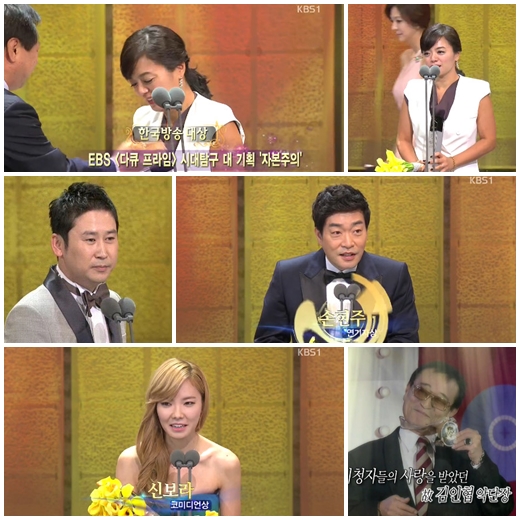 한석준 KBS 아나운서, 이진 MBC 아나운서, 유경미 SBS 아나운서가 공동 진행한 이날 시상식에서는 신동엽이 TV진행자 부문, 손현주는 연기자 부문에서 각각 수상의 영예를 안았다. 또 가수 싸이에게 가수상, 지난 5월 30일 타계한 고 이종환에게는 공로상이 주어졌다.