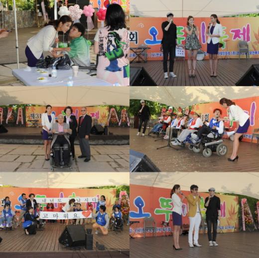 특히 전국 각지를 돌며 5년 째 뇌성마비복지회와 인연을 이어오고 있는 현영은 공연을 위해 무대에 올라온 뇌성마비장애인들과 재회의 인사를 나누며 남다른 친밀감을 표하는 등 훈훈한 장면을 연출, 더욱 눈길을 끌었다.