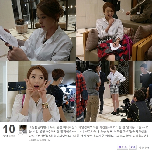 이다희가 공개한 사진은 KBS 2TV 수목드라마 '비밀'의 촬영현장이 담겨있다. 이다희는 사진 속에서 대본을 읽거나 카메라 앞에서 촬영에 임하는 한편, 소파에 앉아 폭소하거나 손으로 브이자를 그리며 포즈를 취하는 등 촬영장의 뒷모습도 전했다. 특히 174cm의 큰 키를 자랑하는 이다희의 몸매가 사진에 고스란히 드러나 눈길을 끈다.