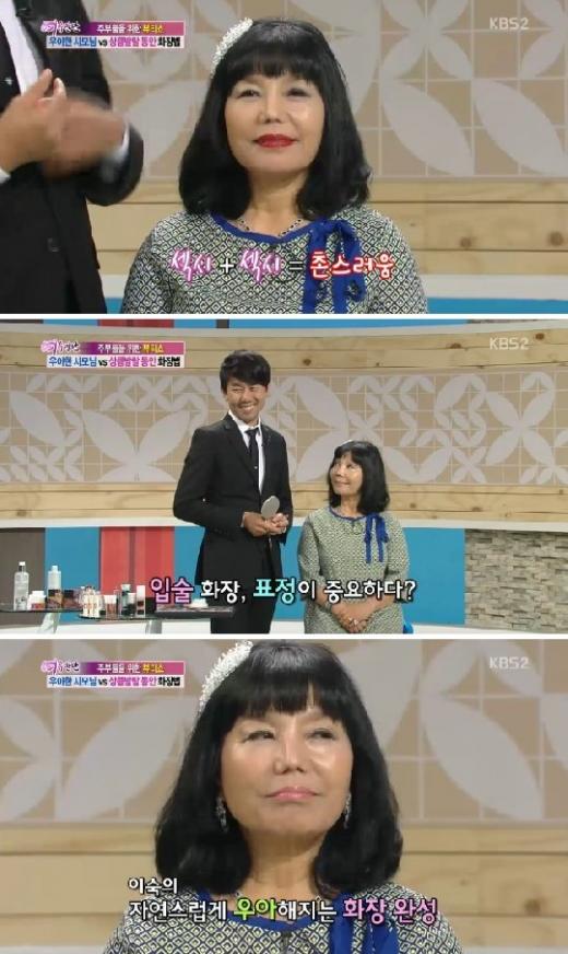18일 오전 방송된 KBS 2TV '여유만만'에서는 탤런트 이숙과 원종례가 출연해 메이크업 아티스트 김승원, 헤어 아티스트 차홍, 스타일리스트 간호섭의 도움으로 스타일 변신에 도전했다.