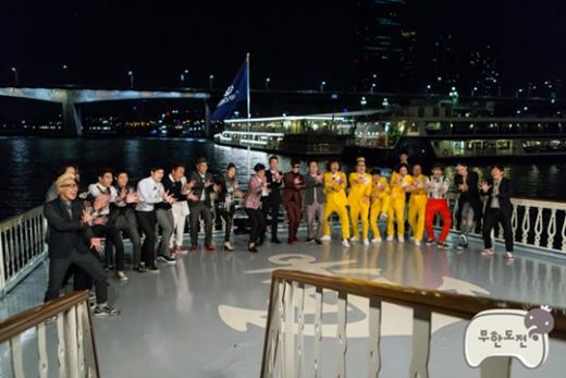 19일 오후 6시20분 방송되는 '무한도전'에서는 선상 파티 콘셉트로 꾸며진 '자유로 가요제'의 중간 점검 현장을 담는다. 당시 각자 개성 있는 파티룩으로 꾸며 입은 출연자들은 '무도 나이트' 이후 처음으로 전원이 한 자리에 모여 친목을 다지는 시간을 가졌다.