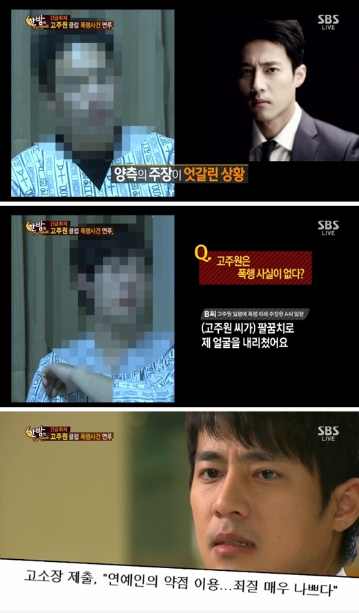 23일 오후 방송된 SBS '한밤의 TV연예'는 고주원의 폭행설을 제기한 A씨 일행의 인터뷰를 공개했다.