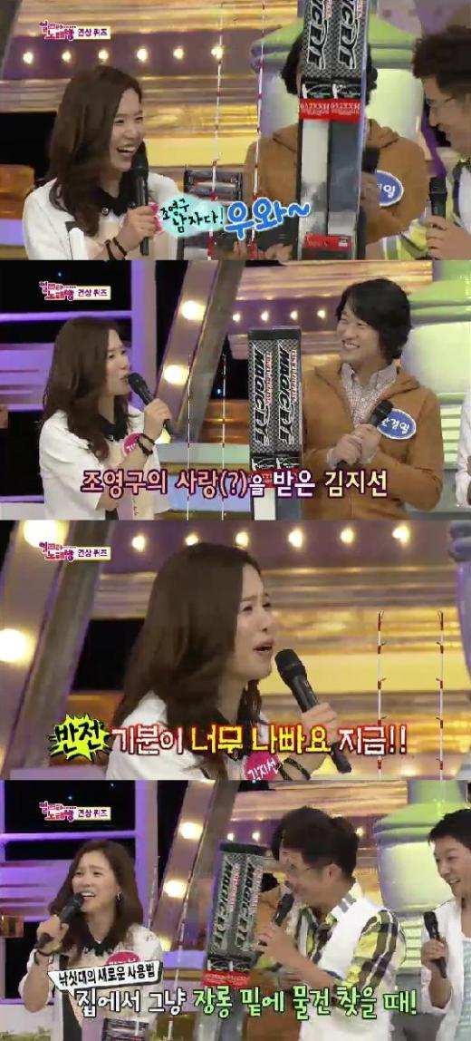 김지선은 조영구의 고백에 "선물 받고도 기분이 좋지 않다"며 ""이거 침대 밑에 물건 찾을 때 사용 해야겠다"고 말해 주변을 폭소케 했다.