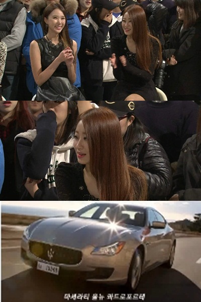 경리는 이날 자신이 좋아하는 차량으로 마세라티를 꼽았다. 경리는 그 이유에 대해 "'상속자들'에서 김탄, 내가 좋아하는 이민호 씨가 마세라티를 타고 나온다"면서 "마세라티가 승차감이 좋다고 하더라"라고 말했다.