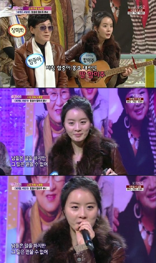한편, 이날 방송에는 함중아 함미주 부녀 외에도 가수 임창제 임미경 부녀, 장미화 김형준 모자, 남상일 이명순 모자 등이 출연했다.