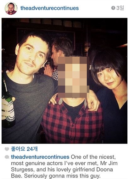 짐 스터게스의 지인은 최근 배두나와 짐 스터게스와 함께 찍은 사진을 공개하며 "가장 멋있고 똑똑한 배우 중 한 명인 짐 스터게스와 그의 사랑스러운 여자친구 배두나. 이들을 그리워 할 것이다. 멋진 사람들(One of the nicest, most genuine actors I've ever met, Mr Jim Sturgess, and his lovely girlfriend Doona Bae. Seriously gonna miss this guy. Wonderful people)"이란 글을 게재했다.