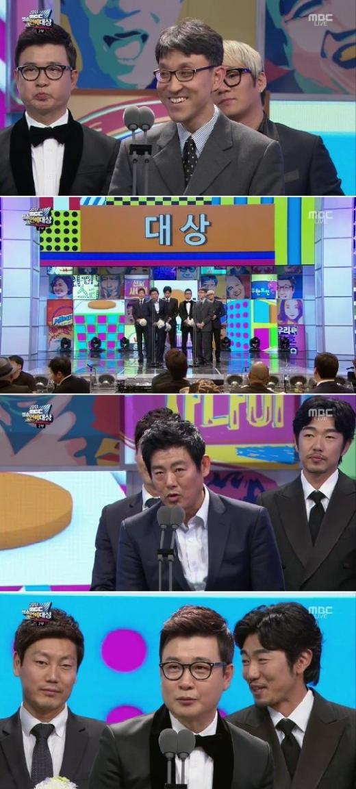 개인이 아닌 프로그램에 대상이 주어진 것은 MBC연예대상 19년 역사 가운데 3번째다. '거침없이 하이킥'의 이순재와 '무한도전'이 공동 수상한 2007년이 첫번째, 개인에게 주는 대상 대신 '일밤-나는 가수다'에 최고의 프로그램상을 준 2011년이 두번째다.
