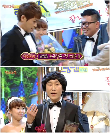 '종규 삼촌'과 '정 때문에'는 30일 오후 8시45분 서울 마포구 상암동 SBS프리즘타워에서 생방송으로 진행된 2013 SBS 연예대상 시상식에서 코미디 최우수 코너상을 안았다.